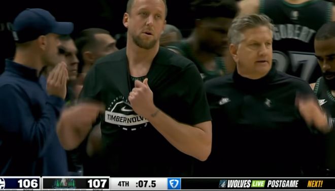 在今天森林狼與快船的最后7.5秒,森林狼只領(lǐng)先一分,而球隊卻選擇在最后時刻,換上了沒有登場的老將英格爾斯,讓后者完成邊線球任務(wù)。