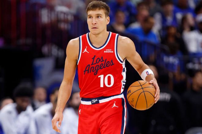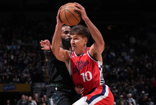 博格達(dá)諾維奇在上賽季中段的一筆交易中被亞特蘭大老鷹送到了快船。在加盟快船之后,博格達(dá)諾維奇在上賽季的NBA常規(guī)賽中總共出場(chǎng)30次,場(chǎng)均出場(chǎng)時(shí)間達(dá)到了25分鐘,場(chǎng)均數(shù)據(jù)為11.4分3.1籃板3.2助攻0.7搶斷0.2蓋帽,還有1.2次失誤和2.3次犯規(guī),投籃命中率47.4%,三分命中率42.7%,罰球命中率87.5%。到了季后賽,博格達(dá)諾維奇總共出場(chǎng)7次,場(chǎng)均出場(chǎng)時(shí)間達(dá)到了16.7分鐘,場(chǎng)均數(shù)據(jù)為6.4分2.9籃板2.1助攻0.4搶斷,還有1.6次失誤和3.6次犯規(guī),投籃命中率36.4%,三分命中率29.2%,罰球命中率85.7%。本賽季開季至今,博格達(dá)諾維奇受到傷病和戰(zhàn)術(shù)安排方面的影響在前24場(chǎng)比賽中總共出場(chǎng)10次,場(chǎng)均出場(chǎng)時(shí)間25.4分鐘,場(chǎng)均數(shù)據(jù)為9.2分3.2籃板3.2助攻0.7搶斷0.1蓋帽,還有1.3次失誤和2.7次犯規(guī),投籃命中率39%,三分命中率33.3%,罰球命中率84.6%。
