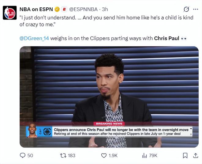 前NBA球員丹尼-格林說道:我很不理解,快船將他遣送回家是什么意思,就好像40歲的保羅像個小孩子,在我看來這一切都荒誕了。