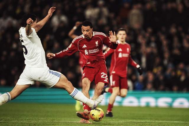 第2分鐘,范戴克頭球解圍失誤,利茲聯(lián)趁機踢出快速反擊,奧卡福爾禁區(qū)外起腳低射稍稍打偏,利物浦逃過一劫。