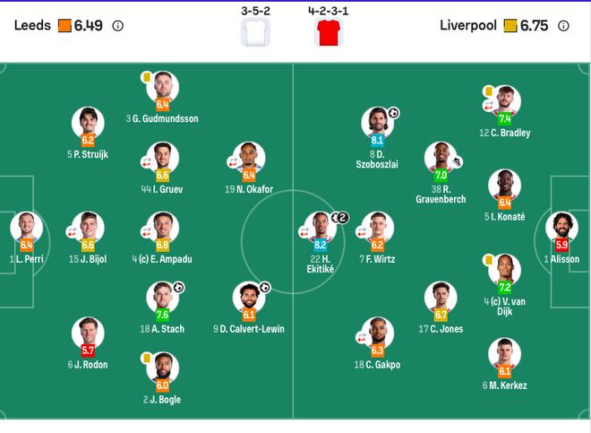 利物浦首發(fā):1-阿利松、4-范戴克、5-科納特、6-凱爾凱茲、12-布拉德利(68’12-戈麥斯)、17-瓊斯、38-赫拉芬貝赫、8-索博斯洛伊、18-加克波(83’9-伊薩克)、7-維爾茨(68’10-麥卡利斯特)、22-?;倏耍?3’3-遠(yuǎn)藤航)。