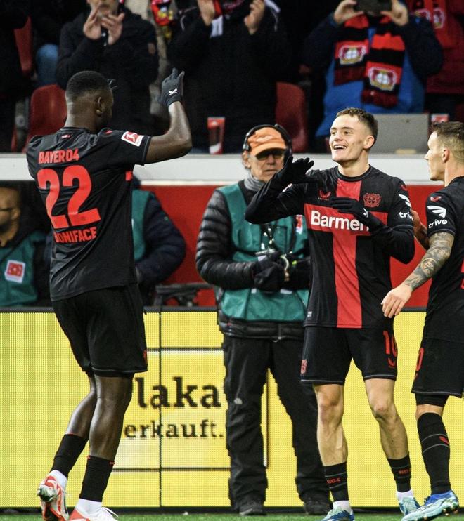 在勒沃庫森時(shí)期,維爾茨在前場(chǎng)中路的搭檔,有過一個(gè)清晰的風(fēng)格變化。先期,阿隆索是在堅(jiān)持使用大中鋒球員,也就是博尼費(fèi)斯突前,為維爾茨和霍夫曼、阿德利等人撐出在前場(chǎng)中路的發(fā)揮空間。