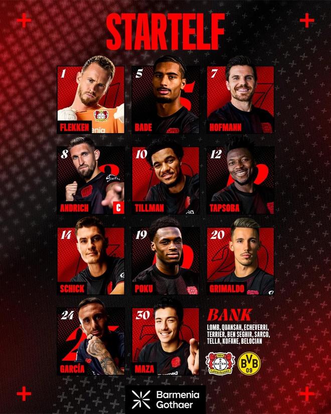 北京時(shí)間11月30日1:30,德甲第12輪繼續(xù)進(jìn)行,勒沃庫(kù)森坐鎮(zhèn)拜耳競(jìng)技場(chǎng)迎戰(zhàn)多特蒙德,本場(chǎng)主裁判為托比亞斯-韋爾茨,賽前雙方首發(fā)出爐。