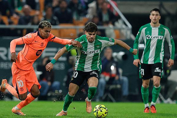 北京時(shí)間12月7日,西班牙足球甲級(jí)聯(lián)賽第15輪,皇家貝蒂斯主場(chǎng)對(duì)陣巴薩。