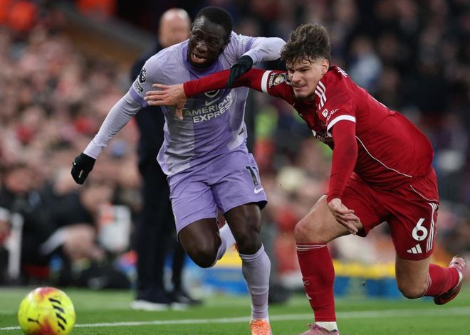 第60分鐘,屢失良機的布萊頓再次遭到懲罰。薩拉赫開出角球,埃基蒂克后點包抄,頭球頂進近角!門將只能眼睜睜看著皮球入網(wǎng)。這粒進球讓比賽基本失去懸念。4分鐘后,布萊頓進行換人調(diào)整,三笘薫和亞辛-阿亞里替補上場。格魯達和巴萊巴被換下。利物浦在第78分鐘換上伊薩克和羅伯遜。布萊頓始終無法進球。最終,利物浦2-0擊敗布萊頓。
