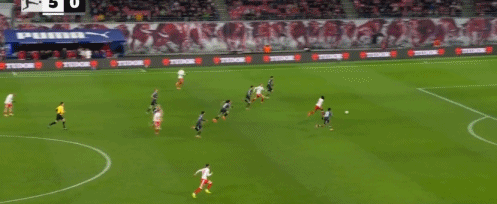 第5分鐘,鮑姆加特納長傳,哈德頭球吊射破門,萊比錫1-0法蘭克福