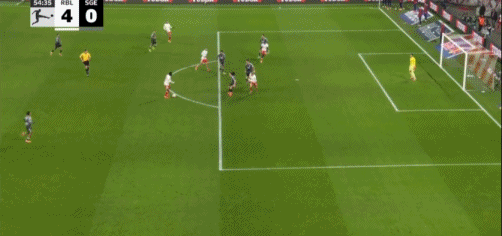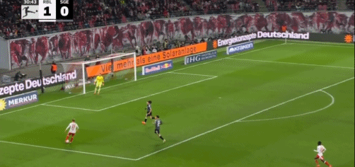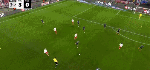 第31分鐘,相互傳射,哈德助攻鮑姆加特納破門,萊比錫2-0法蘭克福