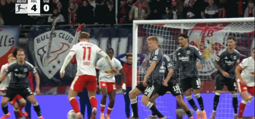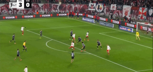 第47分鐘,迪奧曼德禁區(qū)內(nèi)跟上破門,萊比錫3-0法蘭克福