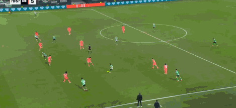 第77分鐘,亞馬爾傳球,費蘭搶點稍慢一步