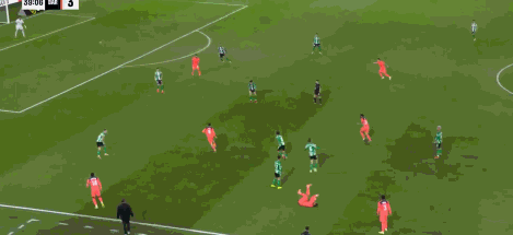 第39分鐘,佩德里傳球,費蘭遠(yuǎn)射折射入網(wǎng)戴帽,巴薩4-1